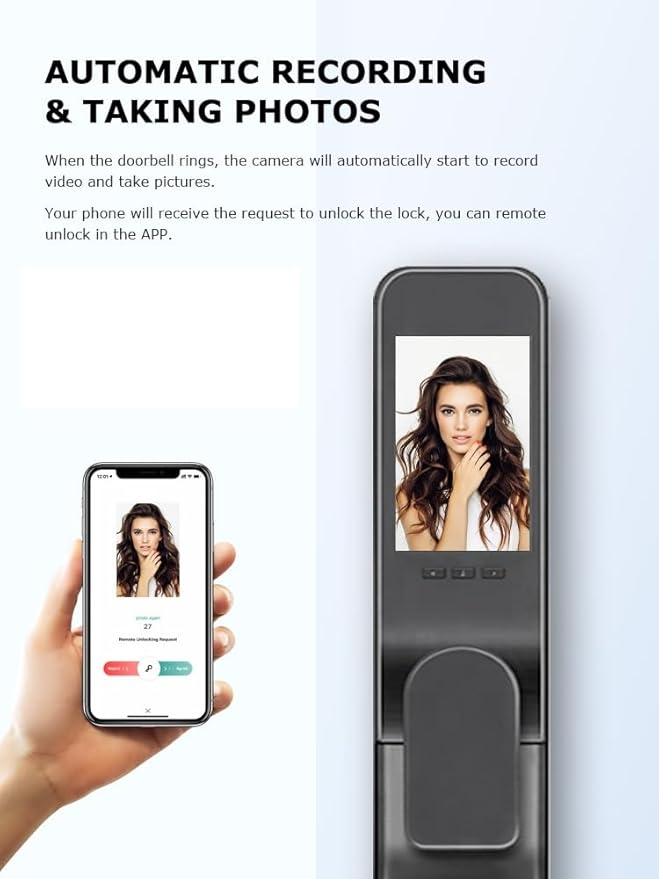 - 🔒 Open the Door Remotely- Check live or records of visitors wherever you are. All this is now possible at the home, workplace, or any entrance that needs control, with the automatically opening mortise, Any time. the lock will automatically take pictures and send the information to the mobile phone APP, click on the information to choose whether to open the door for the guest remotely.
