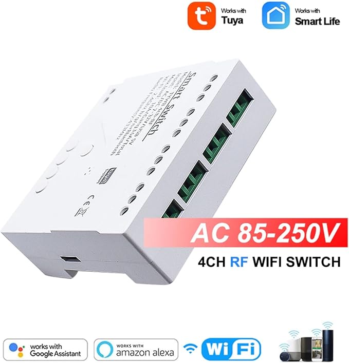 - This wifi switch can be used with Alexa / Google Assiatant, you can use voice control to turn on/off home appliances. You can use Tuya /SmartLife APP on Android and iOS to remotely control the on/off of electronic devices from anywhere. You can also use the 433 MHz radio frequency remote control to open/close garage doors, lights or other electrical equipment.