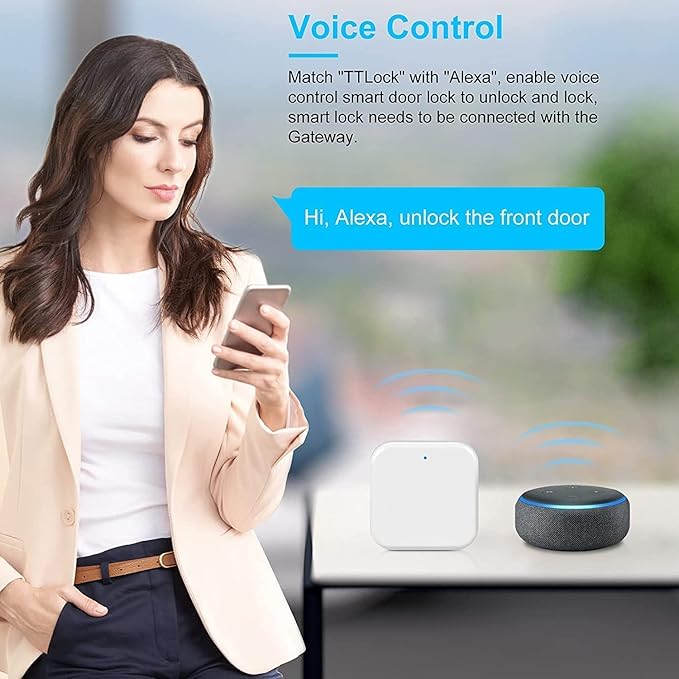 - 【 Unlock By Voice Control】: This WiFi gateway for smart lock works with Alexa device (Alexa not included) to realize voice control WiFi smart door locks, no restrictions on pairing, TTLock gateway wifi can pair multiple smart door locks, perfect sound for opening doors when you’re home in the dark or when your hands are full and you can’t easily reach the keys, easy to open the door.