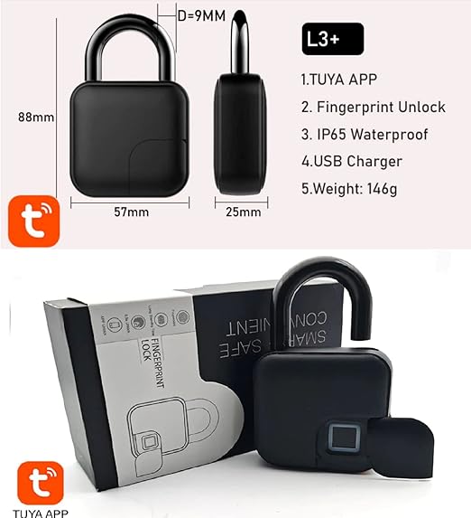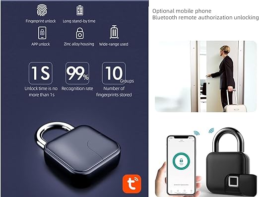 - [Tuya/Smartlife Mobile APP Unlock] Bluetooth outdoor waterproof IP55 Fingerprint padlock supports a FREE mobile APP control. The padlock can be unlocked via mobile APP or yours fingers. You can add countless users and set their unlock period time for friends, neighbors, staff , check the unlock records/position.