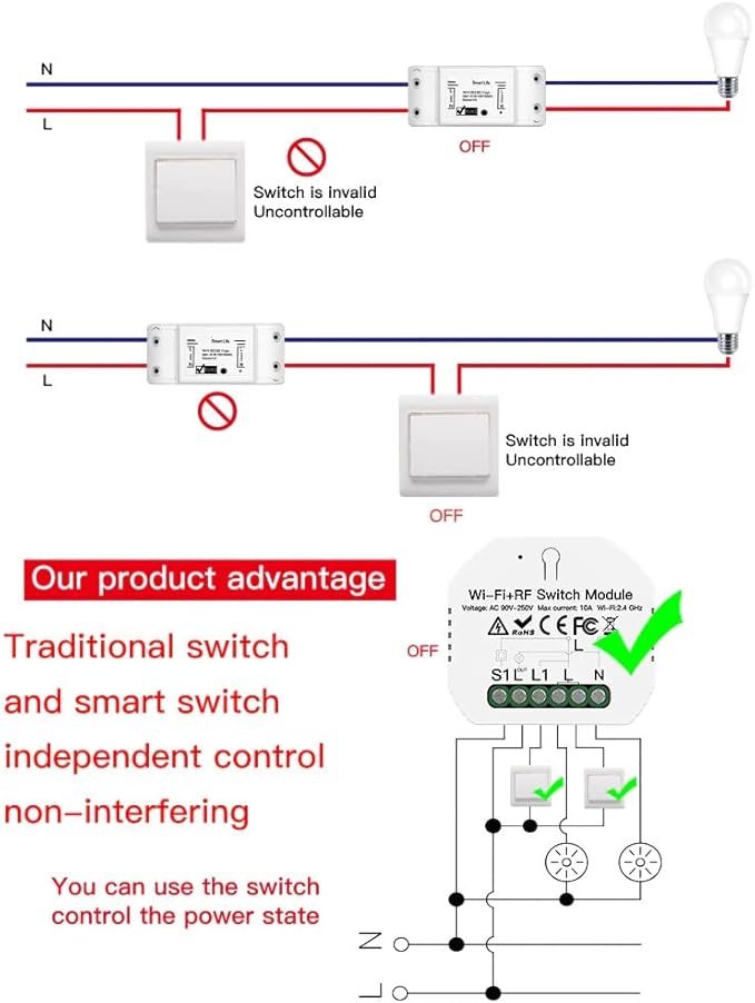 - [ Wide Range Voltage ] -Voltage ac 100-240vac / 10 amp maximum load DIY Switch Module Can Control a Wide Range of Lights and Appliances.