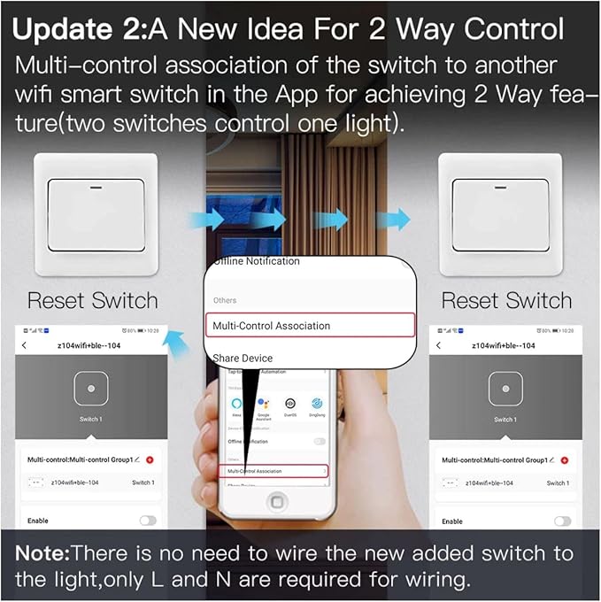 - [ Dual Way Control ] -1Gang/2 Gang/3 Gang / 4Gang Eazyliv WIFI Switch Module Upgrade 2 way control switch without change wiringdesign of house.
