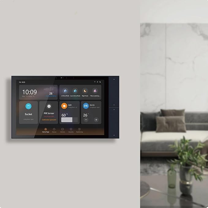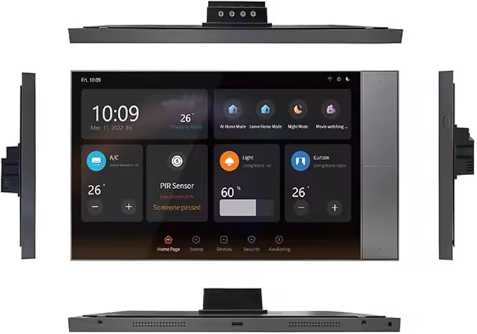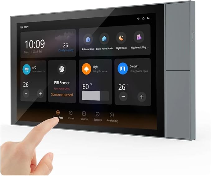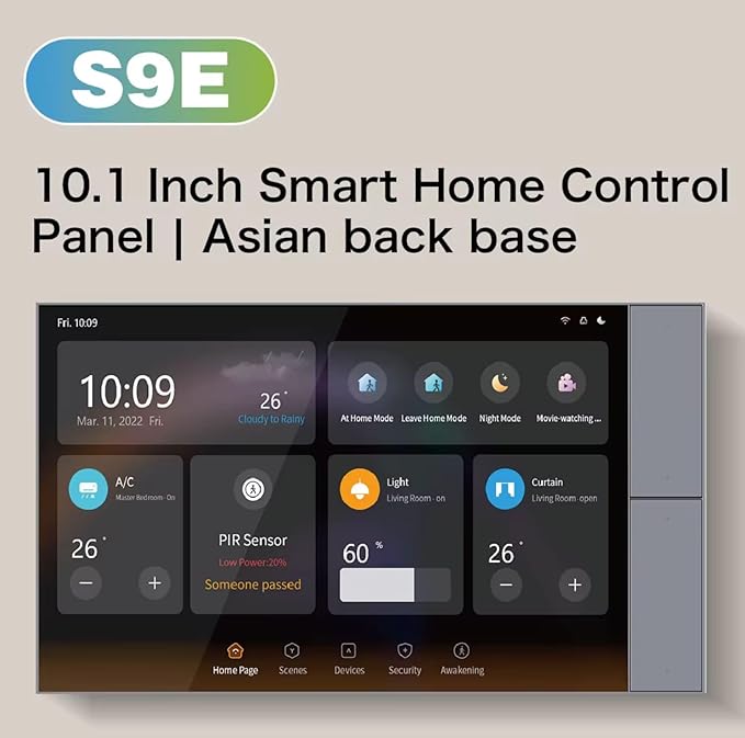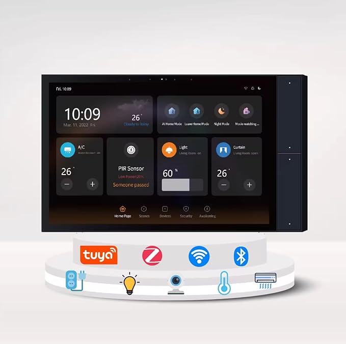 - 4. Widely compatible with lights, curtains, air conditioners, and all other smart home devices for central control. Configure Smart Home scenes in the APP, turn on the scene mode with one touch on the screen.No more time required to open APP to find specific device to trigger among so many ones.