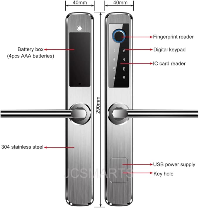 - 3. Long battery life Support 4 AAA batteries. Battery life can last 5-6 months Emergency battery back-up, this electronic door lock would alarm if it is in low battery, you could temporarily charge your lock by power bank or any power source with micro-USB port.
