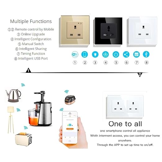 - 【High Quality】: 4mm tempered glass wall plate. Fire-resistant PC base material. Our Wifi home socket wifi is Fireproof and Waterproof. Protection Against Electric Shock for Your Family.