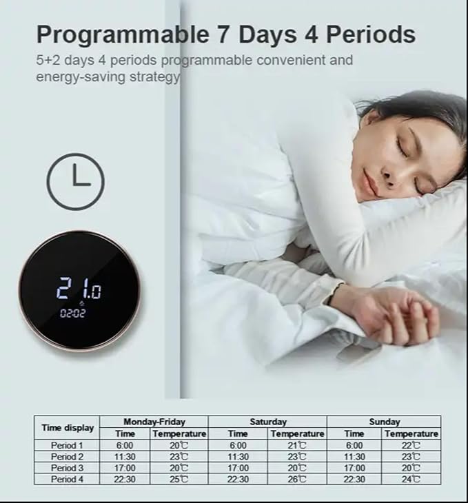 - 4. Thermostat goes in standby display screen, it have automatic sensor for wake up screen & controlling brightness level when movement detected.