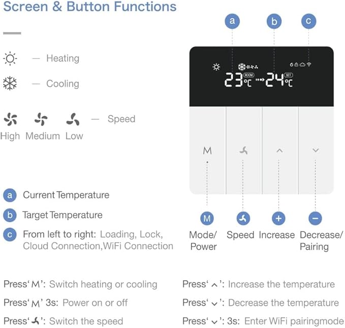 - Eazyliv Brand Thermostat comes with Modern design. Thermostats are designed to on/off, control three speed fan/single speed fan and one/two wired motorized valve/compressor in air conditioner, via comparison of the room temperature and setting temp. No matter you stay at home or abroad. . For more smart products or other Model/designs, you can search “Eazyliv” in Amazon website.