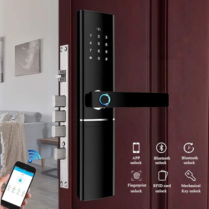 - It comes with Smart cards + Mechanical keys. One time use temporary codes / cards / Fingerprints can be generated to guests, visitors, housekeepers or employees. This is heavy duty door lock so it can be installed in Villa Main door.