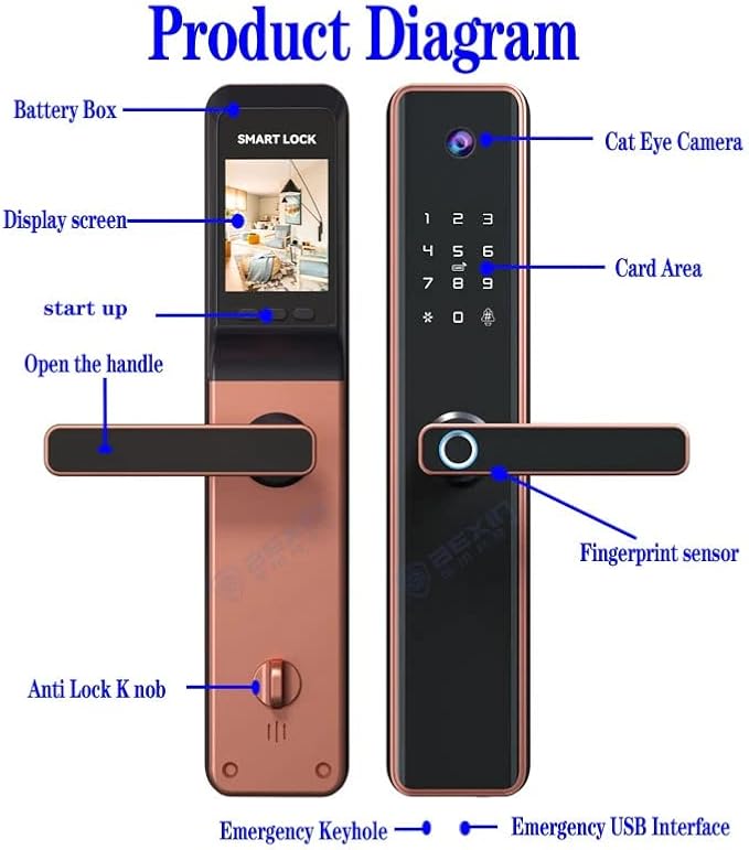 - 🔒【YOU’RE A KEY】No need to worry about key anymore as you are the key. Eazyliv Brand lock offers you keyless entry in the house. It helps you unlock a door with fingerprints. With front camera , you can view the person always in the back handle monitor before opening lock at any time. For more smart products or other Model/designs, you can search “Eazyliv” in Amazon website.