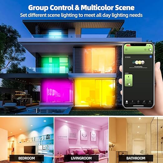 - 【Group Control】Change any room into a dance floor ,or create a relaxing and quiet atmosphere. Such as living room, kitchen, bedroom and so on. Bulb group. Control all lights at the same time by creating groups and adding your lights into your group.