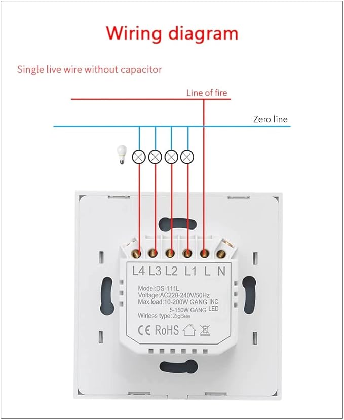- 【Neutral Wire Optional】Two Wiring Methods(N+L wire/ only L wire); No neutral wiring required for the single live wire version; Wire the neutral wire on the switch when needed; No capacitor needed for the new version. Better user experience without noise from electric current; Tuya Zigbee hub is required for the normal use of this switch.