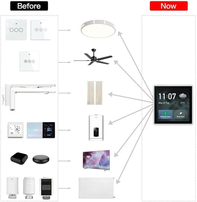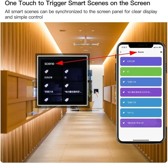 - 2.[Widely compatible]Widely compatible with lights, curtains, air conditioners, and all other smart home devices for central control. Configure Smart Home scenes in the APP, turn on the scene mode with one touch on the screen.No more time required to open APP to find specific device to trigger among so many ones.