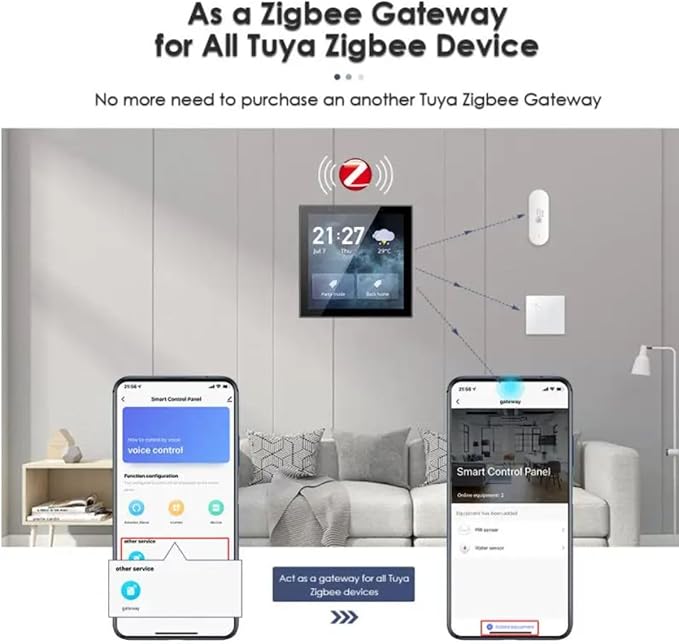 - 4.[substitute gateway]A good substitute for another Tuya ZigBee gateway at home,and directly use the control panel as a gateway for adding Tuya ZigBee devices in App for intelligent controls,up to 100 ZigBee sub devices available for being added.
