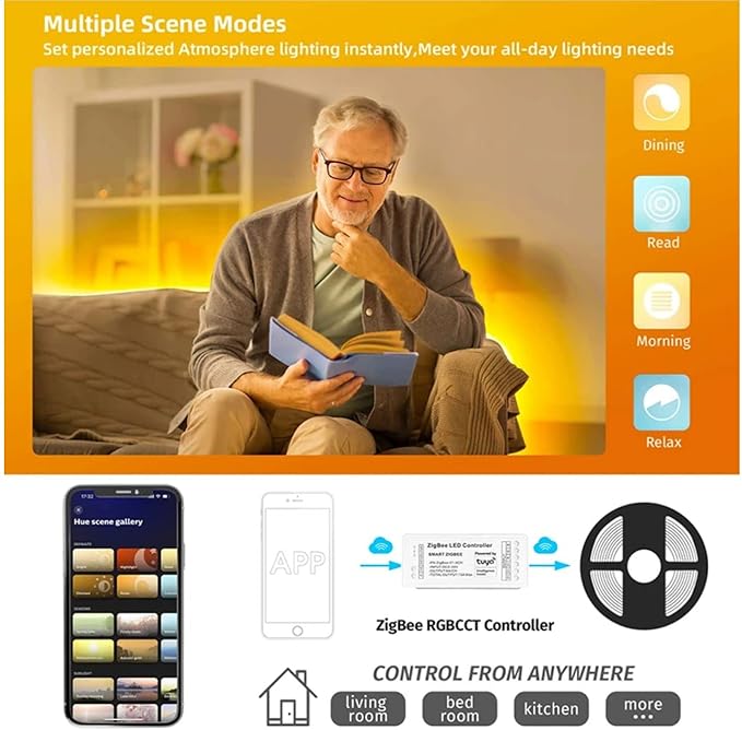 - 2. The brightness and color of the light strip can be adjusted through the mobile app control.