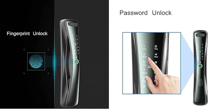 - 🔒【YOU’RE A KEY】No need to worry about key anymore as you are the key. Eazyliv Brand lock offers you keyless entry in the house. It helps you unlock a door with fingerprints. With front camera , you can view the person always in the back handle monitor before opening lock at any time. For more smart products or other Model/designs, you can search “Eazyliv” in Amazon website.